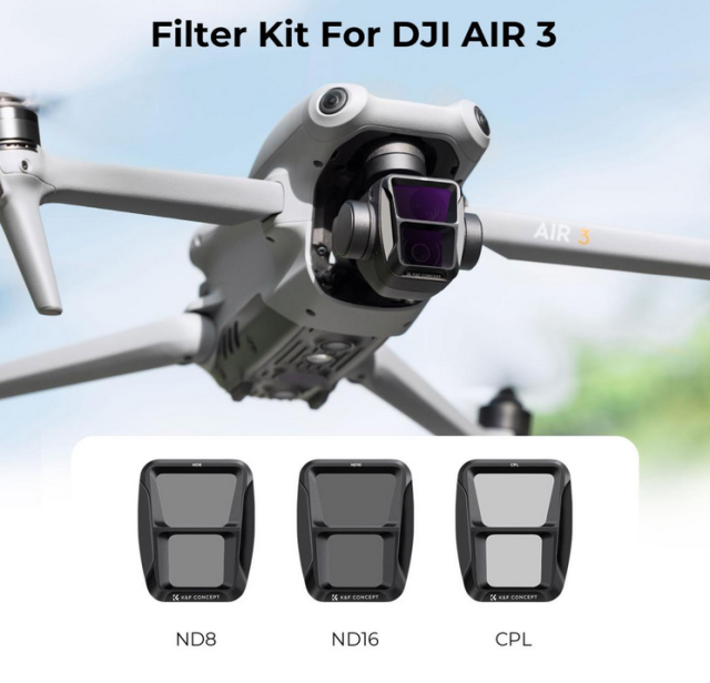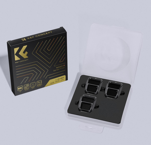 K&F DJI Air 3 filter set uključuje CPL, ND8 i ND16 filtere dizajnirane za poboljšanje kvalitete videa i slike za DJI Air 3 korisnike. Izrađeni od HD AGC optičkog stakla, ovi filtri imaju 28-slojnih višeslojnih slojeva za izdržljivost i lakoću čišćenja. Lagan i siguran za gimbal, set je savršen za smanjenje odsjaja i kontrolu brzine zatvarača u različitim uvjetima osvjetljenja.