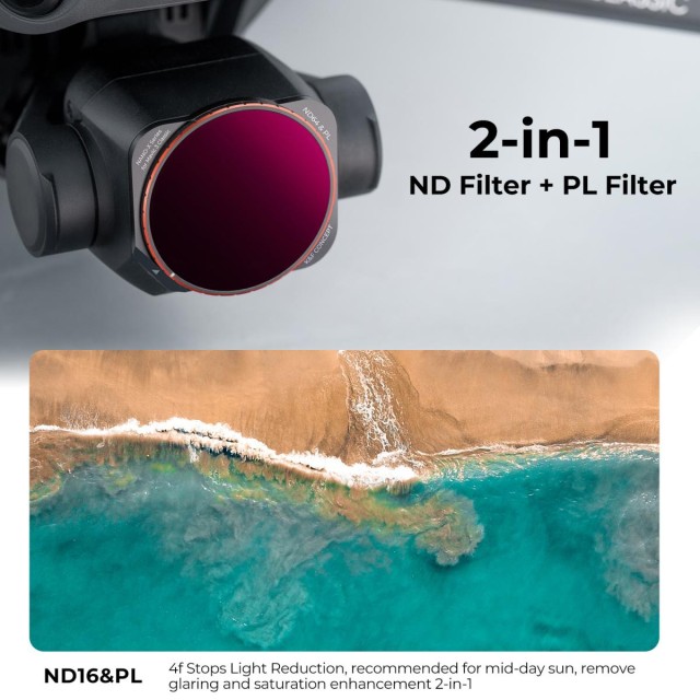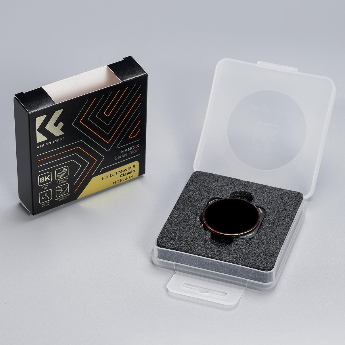 Dizajniran posebno za DJI Mavic 3 Classic , K&F Concept ND16 & PL filter integrira dva bitna efekta u jedan filter. Funkcija ND16 smanjuje dolazno svjetlo za 4 stupnja, što ga čini idealnim za snimanje pri jakom dnevnom svjetlu i omogućuje bolju kontrolu nad brzinom zatvarača i ekspozicijom. Ugrađeni CPL (polarizator) pomaže u smanjenju refleksija i odsjaja s nemetalnih površina poput vode i stakla, a istovremeno poboljšava zasićenost boja i kontrast za živopisnije snimke iz zraka.