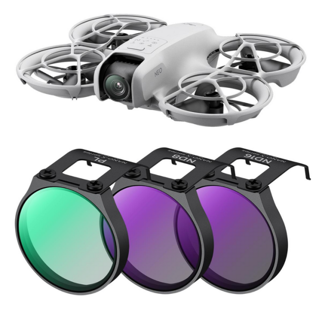 Sada filtrů K&F DJI NEO 3ks obsahuje filtry CPL, ND8 a ND16 určené pro drony DJI. Tyto filtry jsou vyrobeny z HD optického skla a 28 vícevrstvých povlaků, zlepšují barvy, snižují odrazy, kontrolují expozici a zajišťují bezpečnost gimbalu, což je ideální pro kvalitní letecké záběry.