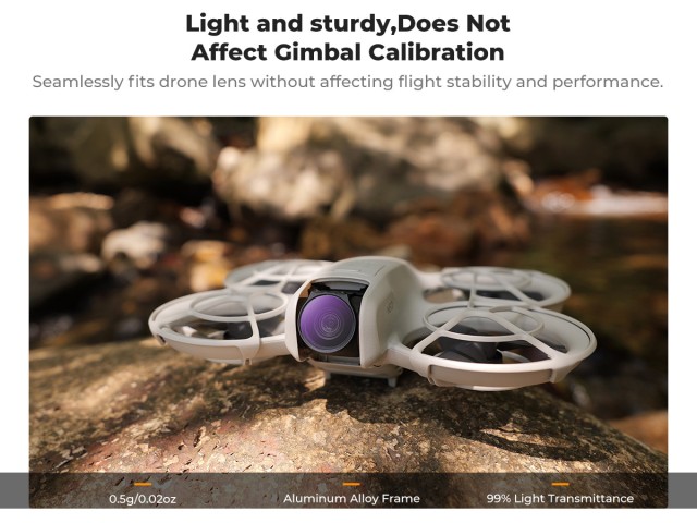 Svaki filtar izrađen je od višeslojnog HD optičkog stakla koje vraća pravu boju, odbija vodu, otporno je na ogrebotine i lako se čisti. Iznimno lagani okvir od aluminijske legure osigurava sigurno pristajanje bez dodavanja dodatne težine, održavajući filtre stabilnima čak i pri brzim manevrima. Kompaktna torbica za pohranu i krpa za čišćenje uključeni su za praktično pohranjivanje i održavanje, što ovaj komplet čini izvrsnim dodatkom za profesionalne i hobističke fotografe dronovima.