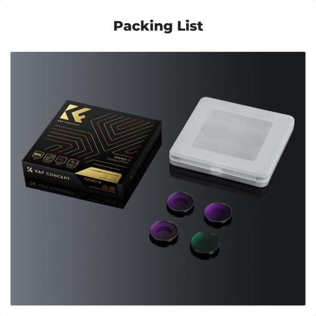 Ovaj najnoviji ND & CPL komplet filtara iz K&F Concepta uključuje CPL, ND8, ND16 i ND32 filtar, s višeslojnim slojem, uvijanjem, jednostavan za instalaciju i rastavljanje, može se široko koristiti u svakodnevnom životu i stvaranju vlogginga, pomoć podići videoigru na viši stupanj. Kompatibilan s DJI Osmo Action 5 Pro / Osmo Action 4.