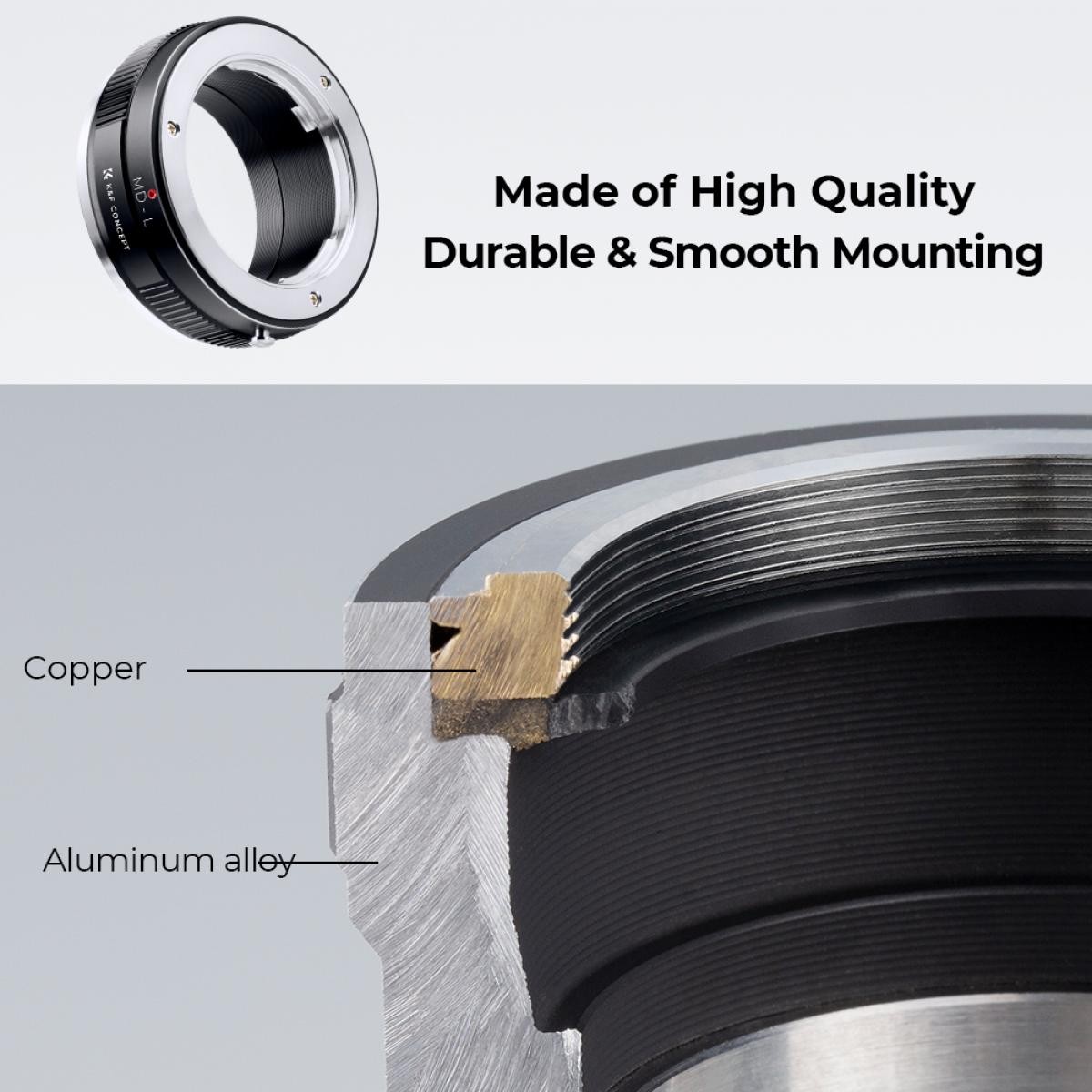 K&F Concept MD-L adapter za ručno fokusiranje kompatibilan je s Minolta Rokkor (SR/MD/MC) objektivima za L-mount kamere.