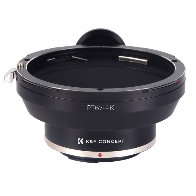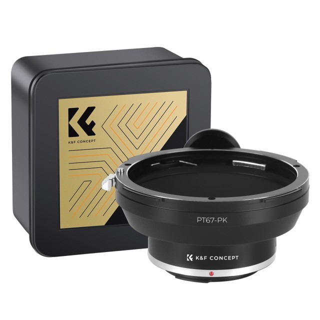 K&F Pentax 67 na Pentax K adapter omogućuje montažu Pentax 67 objektiva srednjeg formata na Pentax K-mount DSLR i mirrorless fotoaparate, nudeći izdržljivu metalnu konstrukciju, glatko ručno upravljanje i podršku za beskonačno fokusiranje.