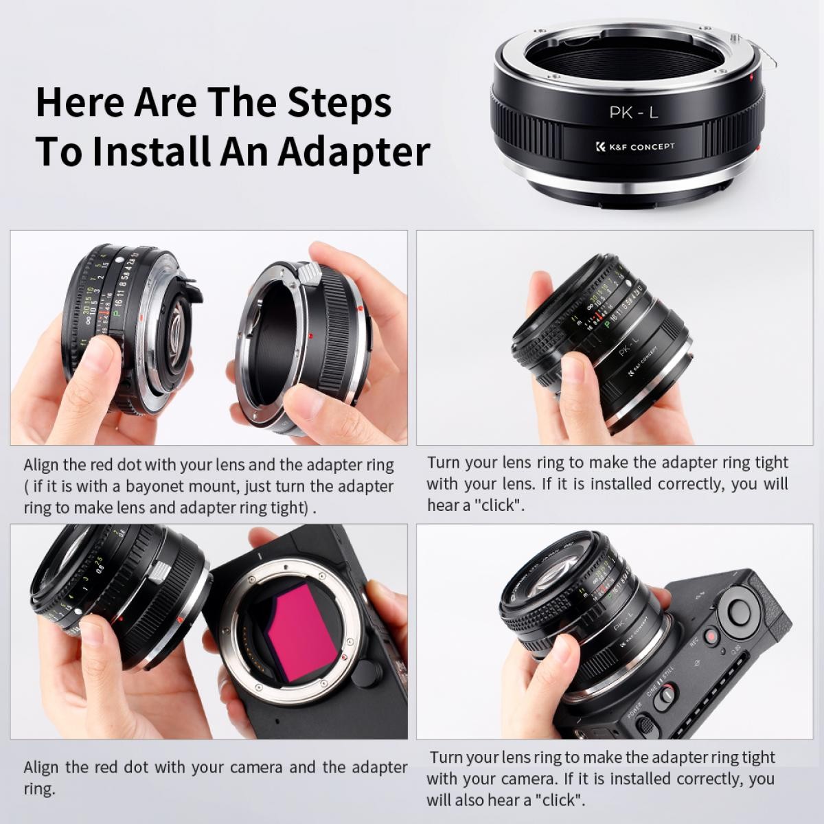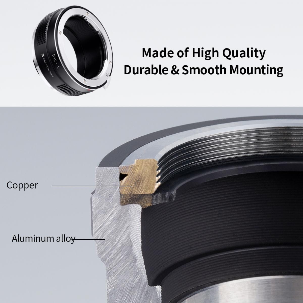 • Spojite Pentax K objektiv na L-mount fotoaparat bez zrcala.