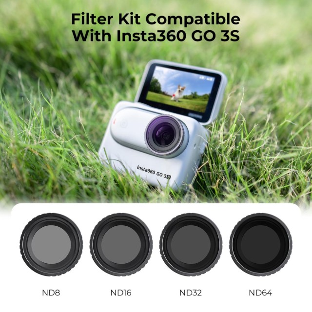 - * 【Kompatibilan s Insta360 GO 3S】Dizajniran za akcijsku kameru Insta360 GO3S, komplet filtara uključujući: ND8, ND16, ND32, ND64.
