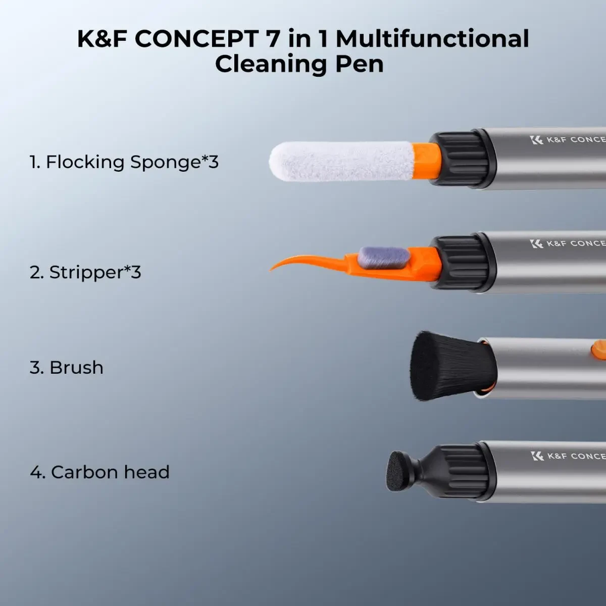 K&F Concept 7-u-1 set za čišćenje fotoaparata s zamjenjivom olovkom za čišćenje, spužvom za čišćenje*3, sredstvom za skidanje dlačica*3, setom za čišćenje objektiva za Canon, Nikon, Pentax, Sony DSLR fotoaparate i priborom za čišćenje.