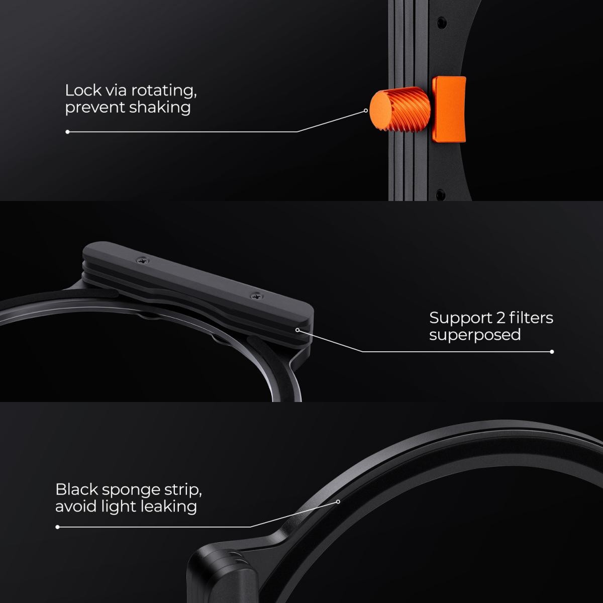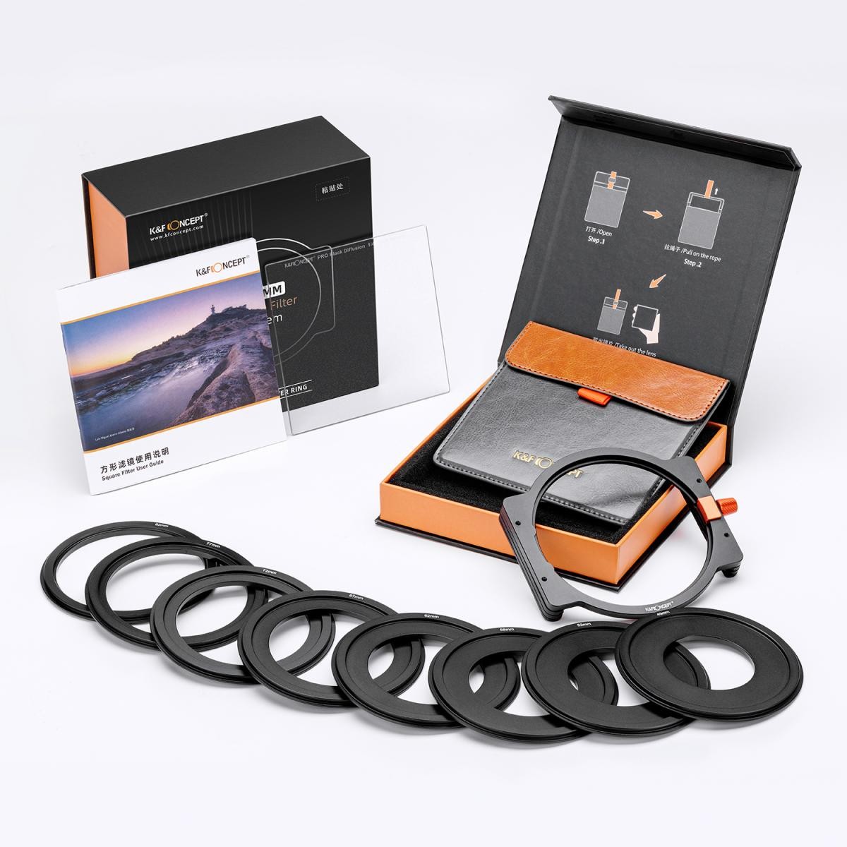 Komplet uključuje izdržljivi metalni držač filtera koji omogućuje kreativnu upotrebu više filtera i tehnika korekcije svjetla. S uključenim adapter prstenovima u rasponu od 49 mm do 82 mm, ovaj komplet je kompatibilan sa širokim rasponom objektiva. Kompaktna torbica za nošenje osigurava sigurnu pohranu i jednostavan transport, što ga čini svestranim izborom za profesionalne i entuzijastične fotografe.