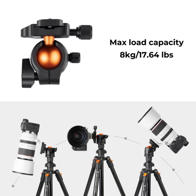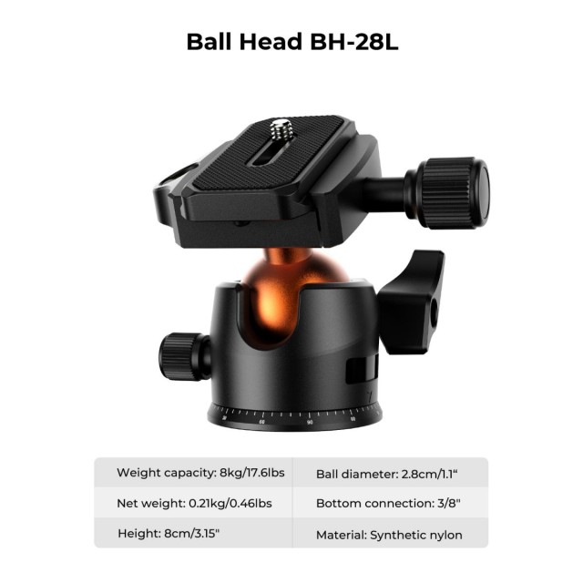 • * 【360° PANORAMA】 28mm velká kovová kulová hlava KF-28 poskytuje nosnost 17,64 lbs/8 kg, lze ji otáčet o 360 stupňů, což pomáhá rozšířit rozsah činnosti digitální zrcadlovky při panoramatickém snímání.