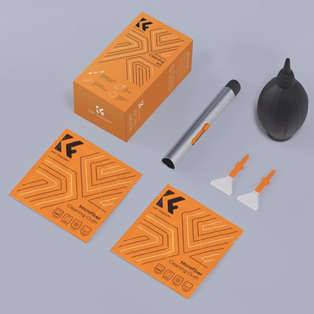 K&F Concept 6-u-1 komplet za čišćenje fotoaparata pruža sve bitne alate potrebne za sigurno čišćenje fotoaparata, objektiva i osjetljive elektronike. S snažnim puhalom za prašinu, zamjenjivom olovkom za čišćenje, senzorskim štapićima punog kadra i dvije vakuumski zatvorene krpe od mikrovlakana, ovaj komplet osigurava profesionalno održavanje za fotografe svih razina vještina.