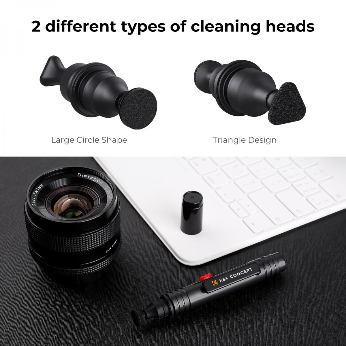 K&F Concept olovka za čišćenje s dvostrukim vrhom nudi siguran i učinkovit način uklanjanja prašine, mrlja i otisaka prstiju s leća fotoaparata, zaslona i osjetljivih optičkih površina. S uvlačivom mekom četkom i dvostrukom glavom za čišćenje, ovaj kompaktni alat osigurava besprijekornu jasnoću za fotoaparate, pametne telefone i druge uređaje.