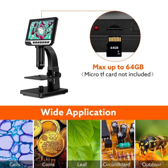 * Izlaz za spremanje slike i videa: ugrađena 12MP digitalna mikroskopska kamera, 1080P slika visoke razlučivosti. Može snimati 4032*3024P slike i 1920*1080P video zapise i podržava maksimalno proširenje memorije od 64G (memorijska kartica nije uključena);