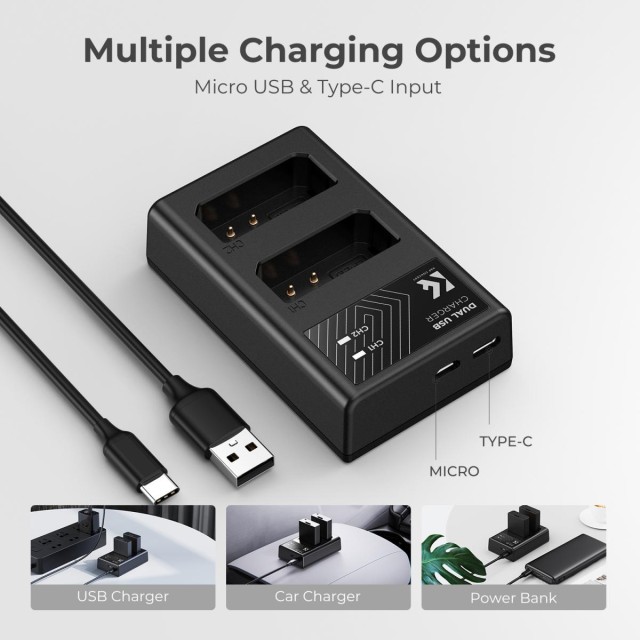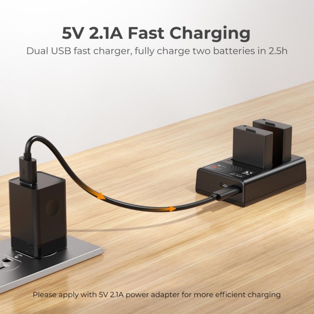 • Komplet za punjenje uključuje 2 zamjenske baterije Canon LP-E10 od 1200 mAh i Micro USB/Type C punjač s dva sučelja, koji je lako nositi kad izlazite. Ne morate brinuti o nestanku struje kada želite zabilježiti prekrasne trenutke.