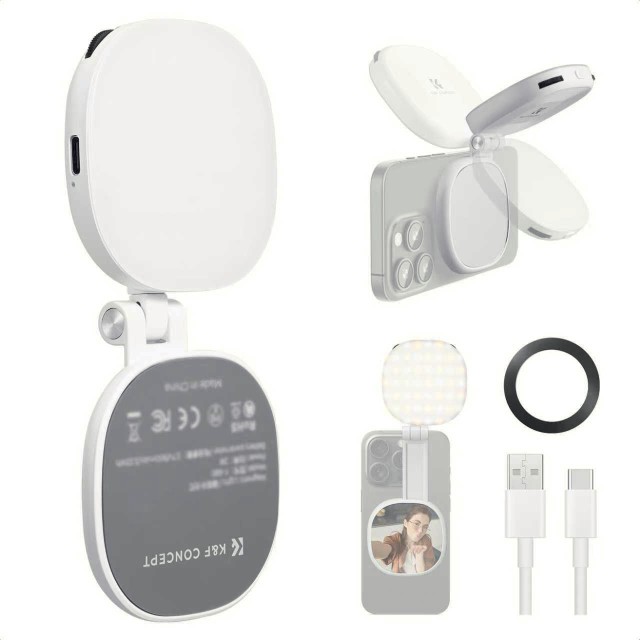 K&F magnetsko selfie svjetlo s rotacijom od 360° i ogledalom je kompaktno, sklopivo LED prstenasto svjetlo dizajnirano za mobilne kreatore koji žele profesionalnu rasvjetu bilo gdje. S magnetskim pričvršćivanjem, podesivom svjetlinom, promjenjivom temperaturom boje, CRI 95+ LED diodama i ugrađenim ogledalom, idealno je za selfije, videozapise, streaming uživo i stvaranje sadržaja u pokretu.