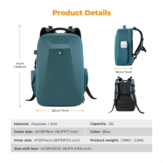 K&F konceptni ruksak za fotoaparat, tvrda torba za DSLR fotografski fotoaparat s pretincem za prijenosno računalo od 15-15,6 inča Vodootporna torbica za fotoaparat kompatibilna za drone Canon/Nikon/Sony/DJI Mavic (Plava). Uključena 2 pretinca. Prednji odjeljak je odvojivi modulski dodatak prilagođen za različite kamere, bljeskalice, leće i dronove, s 2+6 pregrada. U stražnji odjeljak mogu se smjestiti prijenosna računala od 16 inča.