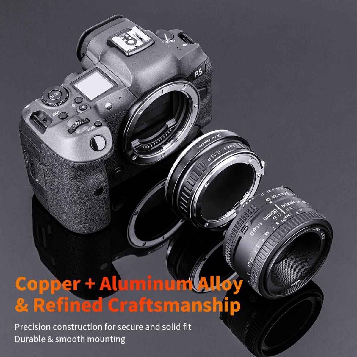K&F adapter za objektive Nikon AI na Canon EOS R omogućuje besprijekornu upotrebu Nikon F/AI objektiva s fotoaparatima serije Canon EOS R, a odlikuje se izdržljivom konstrukcijom od mesinga i aluminija, ručnim upravljanjem i potpunom podrškom za beskonačno fokusiranje.
