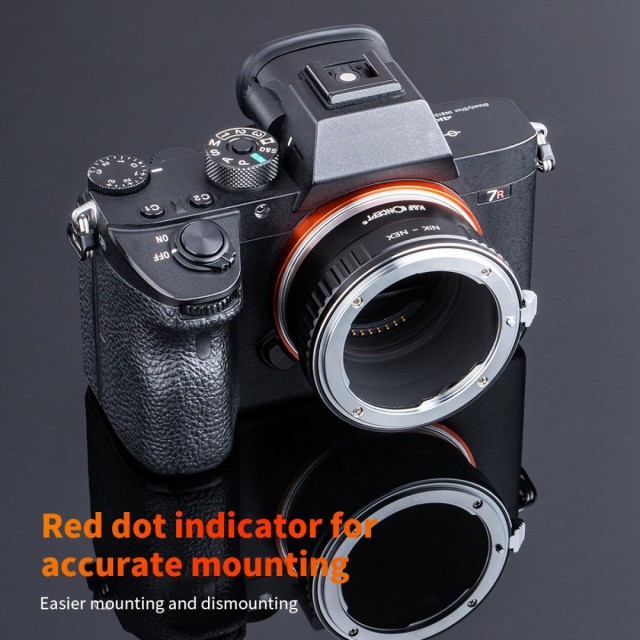 K&F Concept Nikon AI na Sony E-mount bakreni adapter za objektive omogućuje vam montiranje Nikon F/AI objektiva na Sony E-mount mirrorless fotoaparate, nudeći izdržljivu metalnu konstrukciju, ručno upravljanje i podršku za beskonačno fokusiranje.