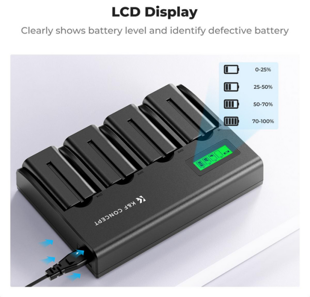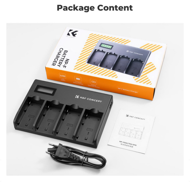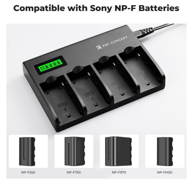 K&F NP-F 4-kanalni punjač nudi inteligentno brzo punjenje baterija Sony DV kamera s LCD zaslonom za status baterije u stvarnom vremenu.