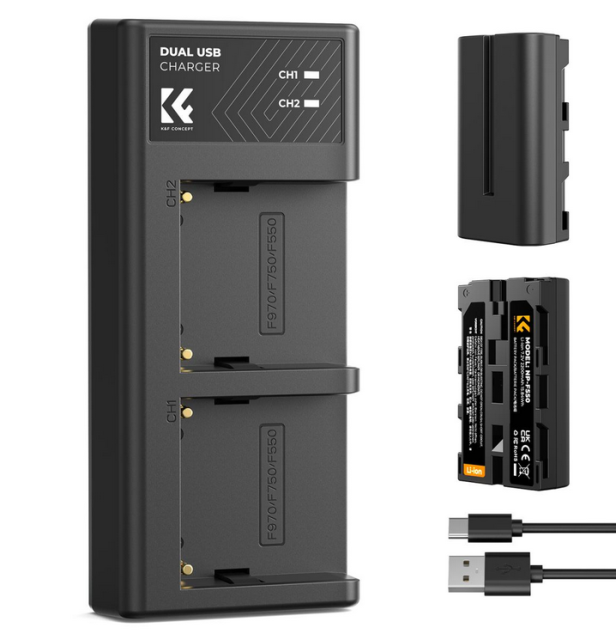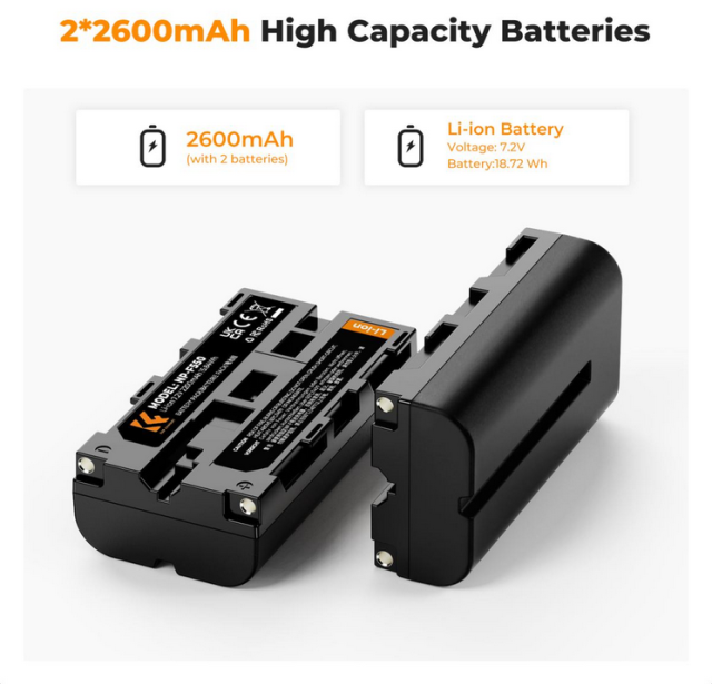 K&F NP-F550 Dual Battery Kit uključuje dvije zamjenske baterije visokog kapaciteta od 2600 mAh i dvokanalni punjač, čime se osigurava produljena snaga za vaše Sony kamkordere i kompatibilne uređaje.