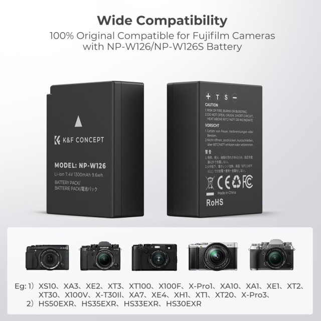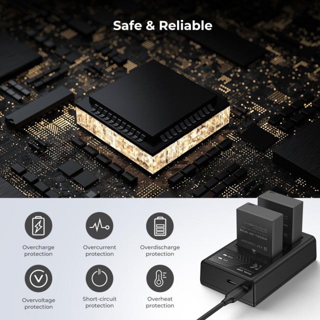 Dvije zamjenske baterije NP-W126 od 1300 mAh i punjač s dva utora pružaju više energije za snimanje fotoaparatom