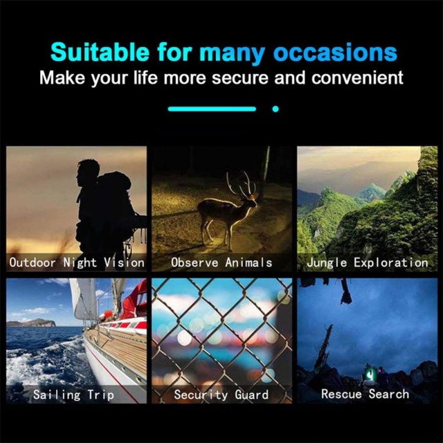 - * 【Široka upotreba】 Ove naočale za noćno gledanje bit će vam dobar pomoćnik u lovu, kampiranju, ribolovu, jedrenju, istraživanju, praćenju, avanturama na otvorenom, potrazi i spašavanju, promatranju divljih životinja, promatranju vrtova, promatranju ptica, fotografiranju pejzaža.