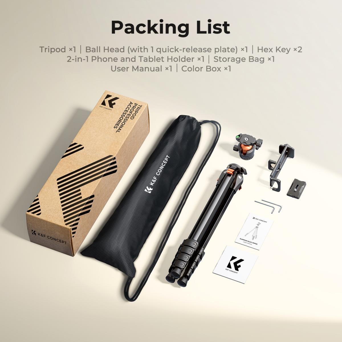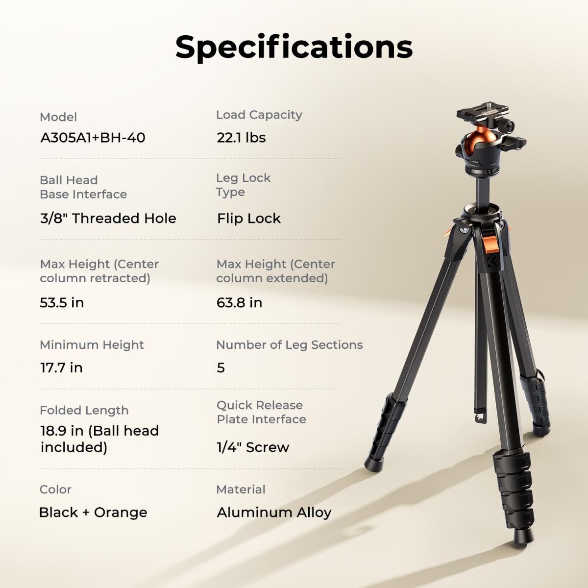 Kompaktan, lagan aluminijski stativ od 63 inča s kuglastom glavom kompatibilnom s Arcom. S maksimalnim nosivim kapacitetom od 22 lb (otprilike 10 kg), idealan je za DSLR fotoaparate, bezzrcalne kamere, dalekozore za promatranje ili telepromptere.