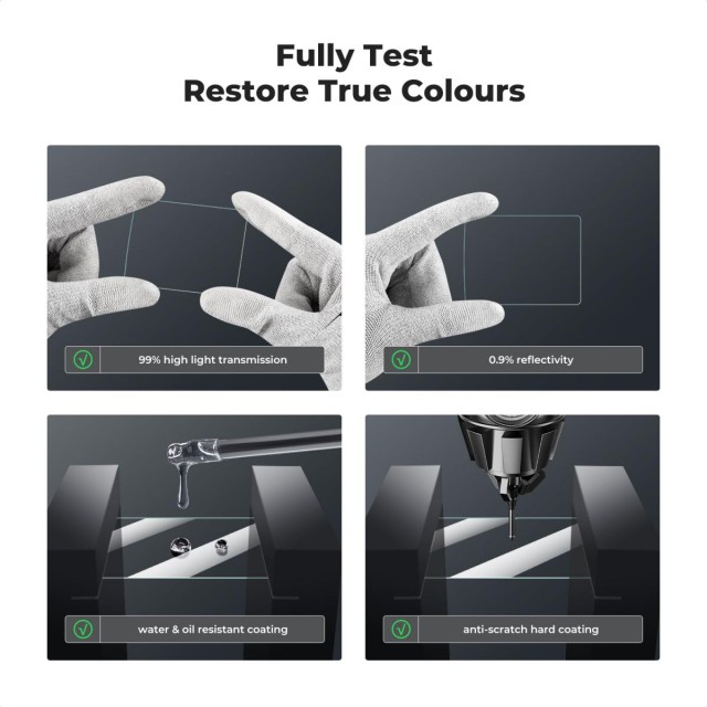 Svaka zaštita nudi ultra bistru prozirnost od 99,99%, održavajući prirodnu kvalitetu slike kamere bez ugrožavanja svjetline ili točnosti boja. Hidrofobni i oleofobni premazi pomažu u sprječavanju mrlja i olakšavaju čišćenje. S debljinom od 0,33 mm, zaštita za ekran zadržava punu osjetljivost na dodir i glatki rad, što ih čini praktički nevidljivima nakon postavljanja.