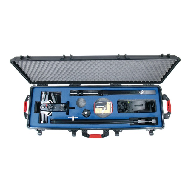 Konfiguracija kompleta JIBO uključuje robusnu vodootpornu kutiju od lagane smole s kotačićima, nastavak za glavu s bazom zdjele od 100 mm s više orijentacija, slijeva na desno i na/ispod i 2 libele.