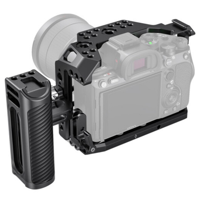Dodajte zaštitu i dodatnu opremu svom fotoaparatu bez ogledala Sony a7R IV s ovim kompletom s bočnim rukohvatom Full Cage iz SmallRiga. Komplet uključuje puni okvir kamere, bočnu ručku s 1/4"-20 vijcima za pričvršćivanje i stezaljku za HDMI kabel.