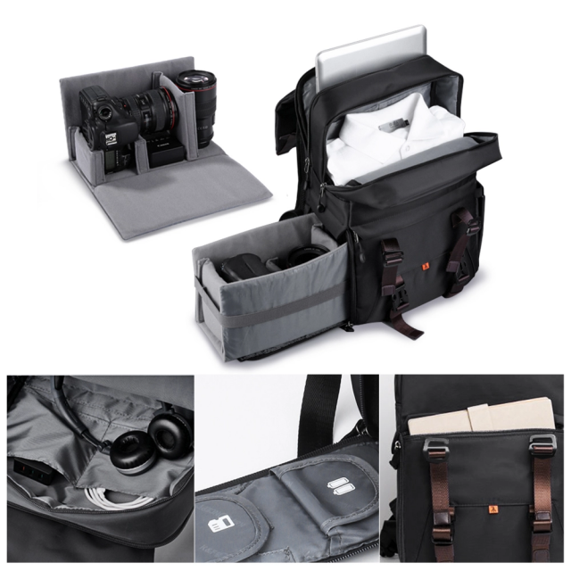 Torba velikog kapaciteta za fotoaparat, 2 objektiva i 15,6" laptop. Paket uključuje: 1 x ruksak za kameru, 1 x vodootpornu kabanicu