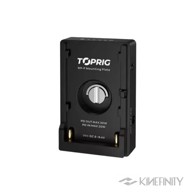 Accsoon Toprig baterijska ploča podržava brzo punjenje PD 30W, osiguravajući brzo punjenje. Široko je kompatibilna i može napajati razne uređaje. Pomoću vijka od 1/4″ na dnu, ploča se može lako pričvrstiti na kameru. U kombinaciji s Kinefinity GripBAT 2Si ili drugim NP-F baterijama, osigurava kontinuirano napajanje za EAGLE HDMI e-Viewfinder.