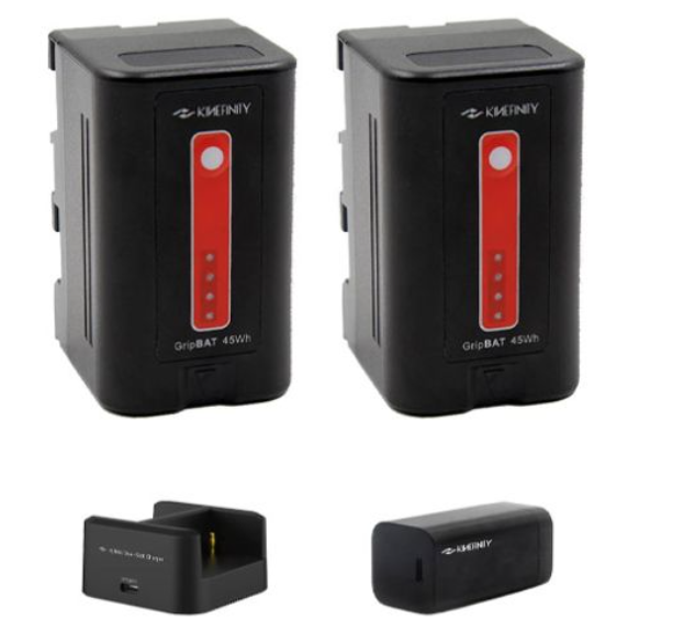 Kinefinity A941-204-01 paket uključuje 2x GripBAT 4S (52 Wh / 14,8 V BP-U30 kompatibilan, 70 W / 5 A) i PD hibridni dvostruki punjač s PD adapterom od 65 W. Puni dvije baterije od 52 Wh do 80% za 90 minuta, djeluje kao UPS, savršeno za ručne MAVO/TERRA platforme.