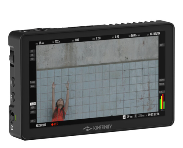 Kinefinity KineMON 5U2 (A120-001-01) je 5" 1080p 2000-nit zaslon osjetljiv na dodir ugrađen u MAVO Edge/mark2/TERRA. Prima video + 5,5 W snage preko jednog 14-pinskog kabela, 100% Rec.709, 170° pogled, 1/4"-20 s tri strane, 260 g aluminija - jak na suncu, ultra-kompaktan, savršen za gimbal i ručnu upotrebu.