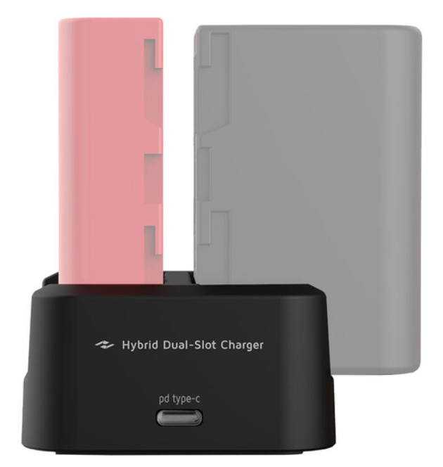 Kinefinity PD hibridni dvostruki punjač (A410-100-01) istovremeno puni dvije GripBAT 2S L-serije ili 4S BP-U30 baterije - čak i mješovite vrste. Podržava brzo punjenje PD od 60 W+ (preporučuje se adapter od 65 W), s LED indikatorima i USB-C ulazom za učinkovito, prijenosno upravljanje napajanjem.