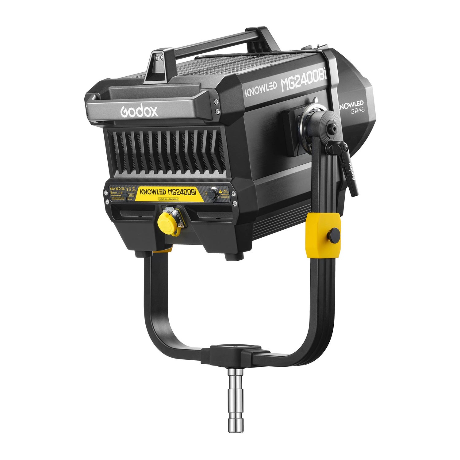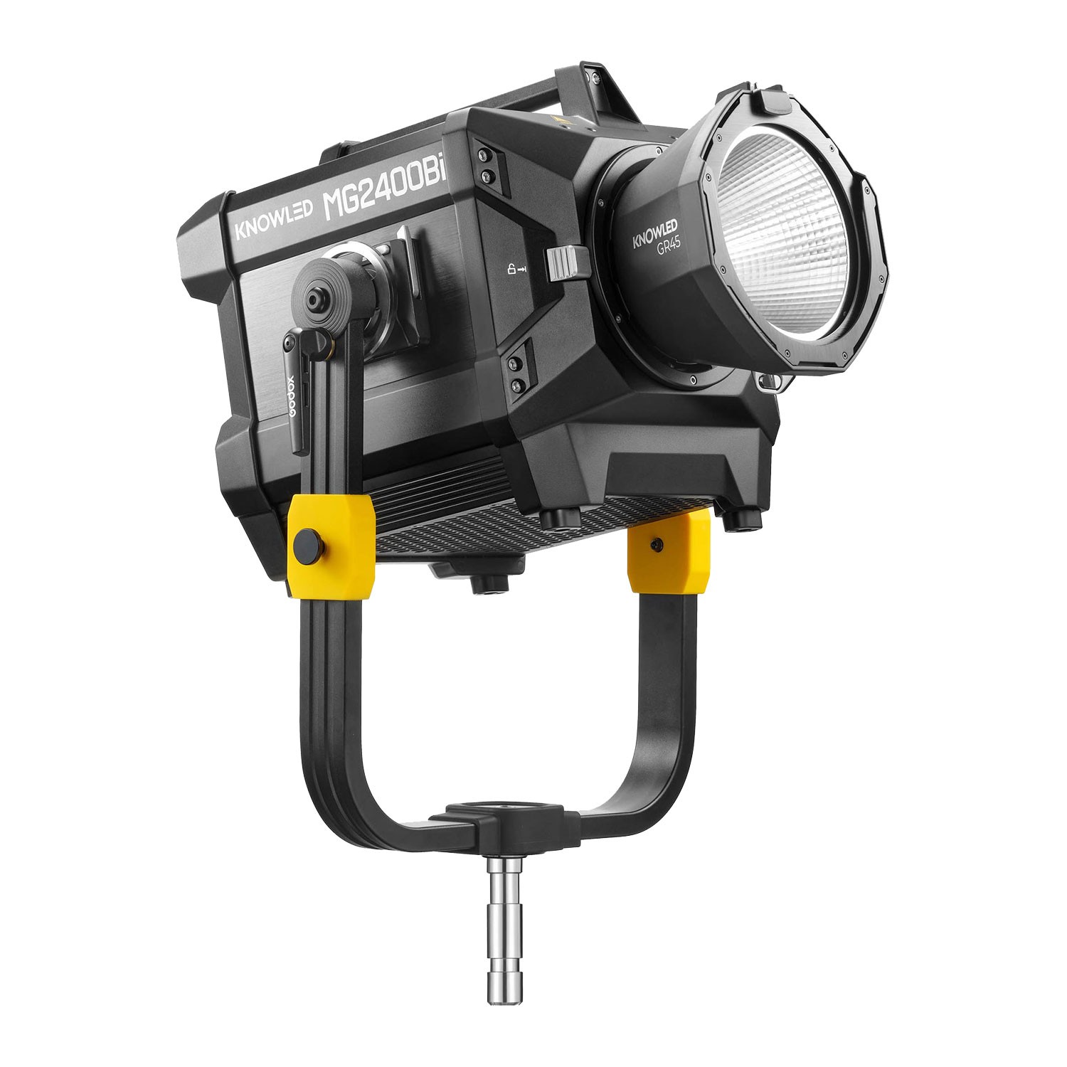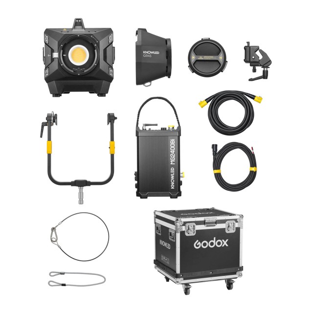 Komplet uključuje 45° GR45 standardni reflektor, zaštitni poklopac, uže za vezanje, DC kabel, stezaljku, antenu, jaram, sigurnosni kabel, glavni kabel i FC05 kutiju za transport i zaštitu. S inovativnim G-Mount sustavom, MG2400Bi inteligentno prepoznaje pričvršćene modifikatore i automatski podešava temperaturu boje, dok njegov vrhunski sustav hlađenja održava siguran rad tijekom duljeg snimanja. Performanse bez treperenja, način rada za ograničenje snage i podsjetnik za održavanje povećavaju pouzdanost rada, što ovo svjetlo čini idealnim za zahtjevna produkcijska okruženja.