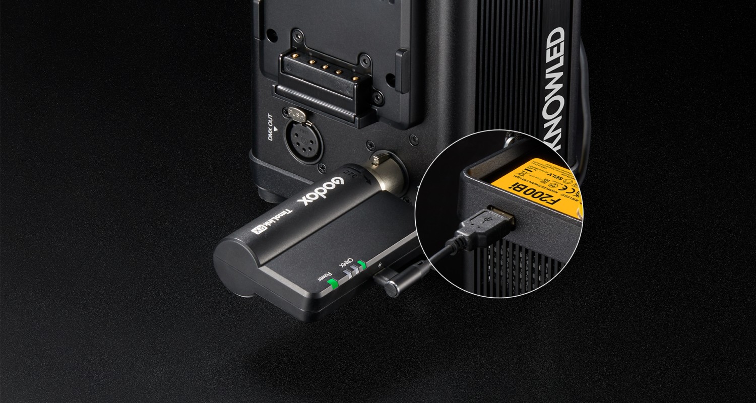 Upravljanje svjetlom je vrlo fleksibilno i podržava više metoda, uključujući lokalno upravljanje na kontroleru uređaja, DMX512, bežično upravljanje LumenRadio CRMX te ugrađenu bežičnu vezu od 2,4 GHz i Bluetooth. To omogućuje besprijekornu integraciju u postojeće postavke rasvjete i daljinsko upravljanje putem kompatibilnih konzola ili mobilnih uređaja. Svjetlo je također kompatibilno s opcionalnim daljinskim upravljačem Godox RC-R9 i aplikacijom Godox Light za dodatnu praktičnost.