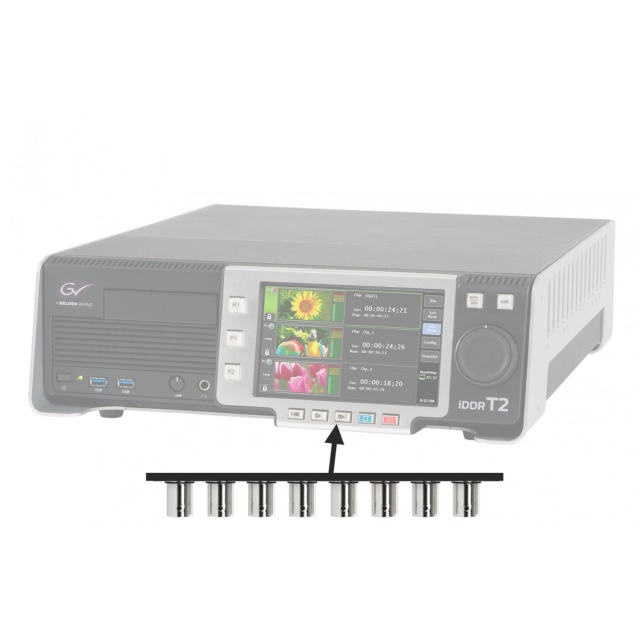 Dodatni dodatak za Grass Valley T2 iDDR 4K disk snimače/reproduktore s 8x SDI sučeljem koje omogućuje istovremeno povezivanje ulaza/izlaza u Quad-Link SDI modu. Mora se naručiti zajedno s diktafonom.