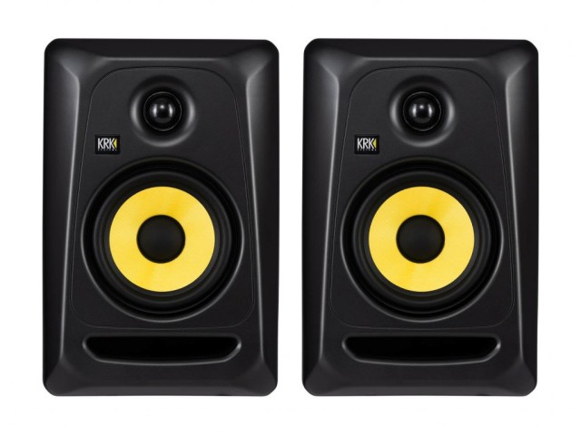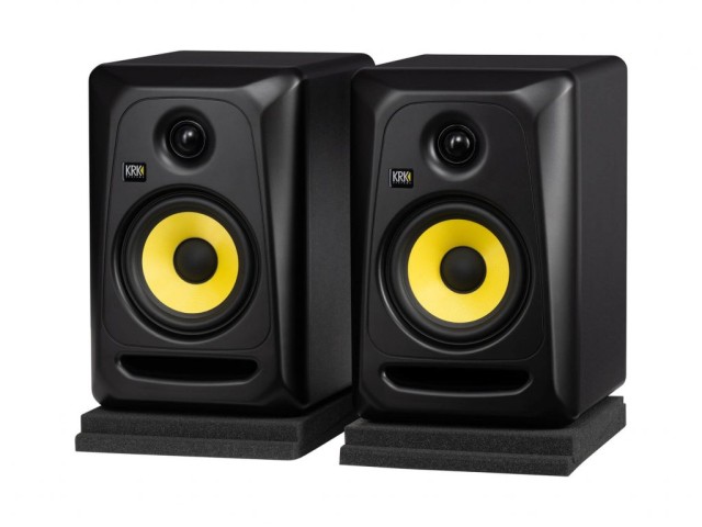 studijski set za slušanje - par KRK Classic 5 dvosmjernih aktivnih monitora, 5" + 1" driveri, 50 W biamping, par XLR-XLR signalnih kabela, strujni kabeli, par prigušivača s elevacijom