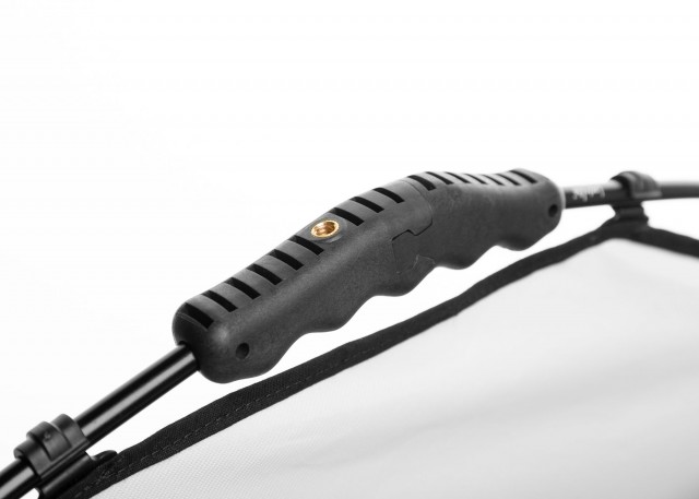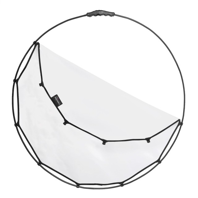 Lagani sklopivi aluminijski okvir brzo se i lako uvlači u sebe, a tkanina difuzora od dvije stope jednostavno se pričvršćuje na okvir. Pametno dizajnirana RapidExoframe ™ konstrukcija se sklapa u nekoliko manjih dijelova i pakira u kućište dimenzija samo 6,5 x 27 x 6,5 cm (2,5” x 10,5” x 2,5”) i težine samo 335 g (reflektor i kućište).