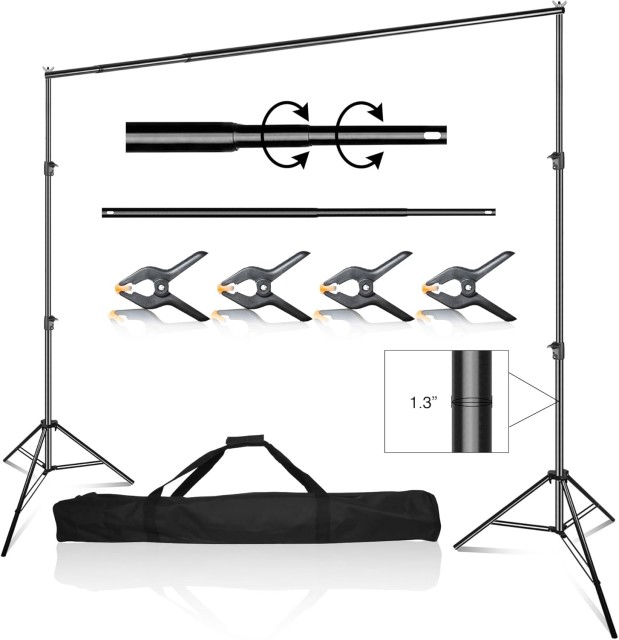 Latourov stalak za podesivu pozadinu savršeno je rješenje za fotografe i videografe. S podesivom visinom do 2,6 m i širinom do 3 m, ovaj izdržljiv stalak od aluminijske legure osigurava stabilnost za sve vaše pozadine. Idealan za profesionalnu ili povremenu upotrebu, jednostavan je za sastavljanje i transport, što ga čini neophodnim za studije, događaje ili snimanja u pokretu.