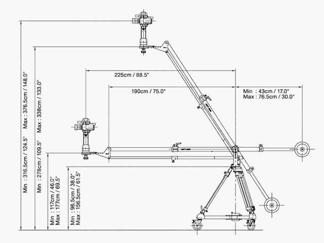 Zahvaljujući teleskopskom dizajnu, možete brzo prilagoditi ruku kamere na željeni kadar. Otpuštanjem nekoliko vijaka možete pomicati ruku naprijed ili natrag i tako postići savršenu ravnotežu čak i na mjestima gdje nema dovoljno mjesta za operatera. Na temelju ovog dizajna, ruka je dobila potrebnu varijabilnost za gotovo svaki snimak u interijerima i eksterijerima. Cijela ruka može se jednostavno postaviti na fiksne noge (npr. T102B ), kotački razmak (npr. DL-8B ) ili na tračnicu (npr. TR-320 ), što dodatno doprinosi svestranoj upotrebi ove ruke.