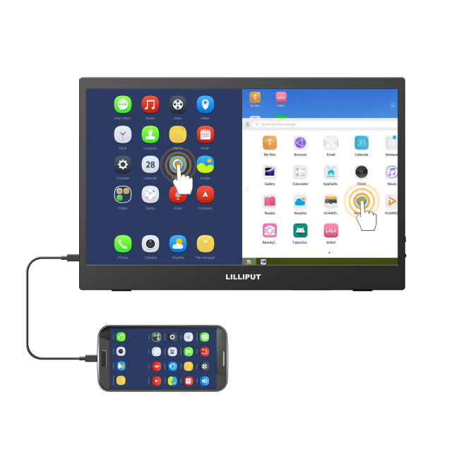S prijenosnim i laganim Lilliput UMTC-1400 Full HD 14" prijenosnim LED monitorom možete gledati sadržaj sa svog prijenosnog računala na većem ekranu gotovo bilo gdje. Jednostavno povežite monitor sa svojim računalom, telefonom ili tabletom pomoću priloženog USB Type-C kabela i počnite gledati sadržaj s većom jasnoćom zahvaljujući Full HD (1920 x 1080) zaslonu. Ovaj prijenosni monitor ima tanak profil od 0,4" i zaslon osjetljiv na dodir u 10 točaka.