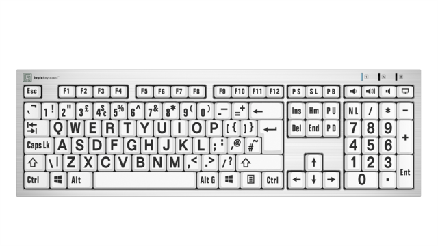 Logickeyboard Large Print tipkovnica dizajnirana je za osobe oštećena vida ili one koji imaju poteškoća s čitanjem postojećih naredbi s tipkovnice. Zahvaljujući vlastitom Large Printu, upravljanje tipkovnicom puno je lakše i brže.