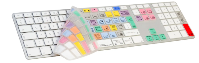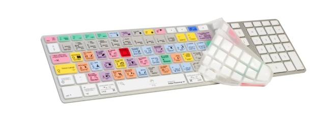 Logickeyboard Photoshop CC Mac Keyboard Skin je tanka, po bojama označena silikonska navlaka dizajnirana za Apple Ultra Thin tipkovnice. Pruža jasno označene prečace za Adobe Photoshop CC, istovremeno štiteći vašu tipkovnicu od prašine, prolijevanja tekućine i habanja.