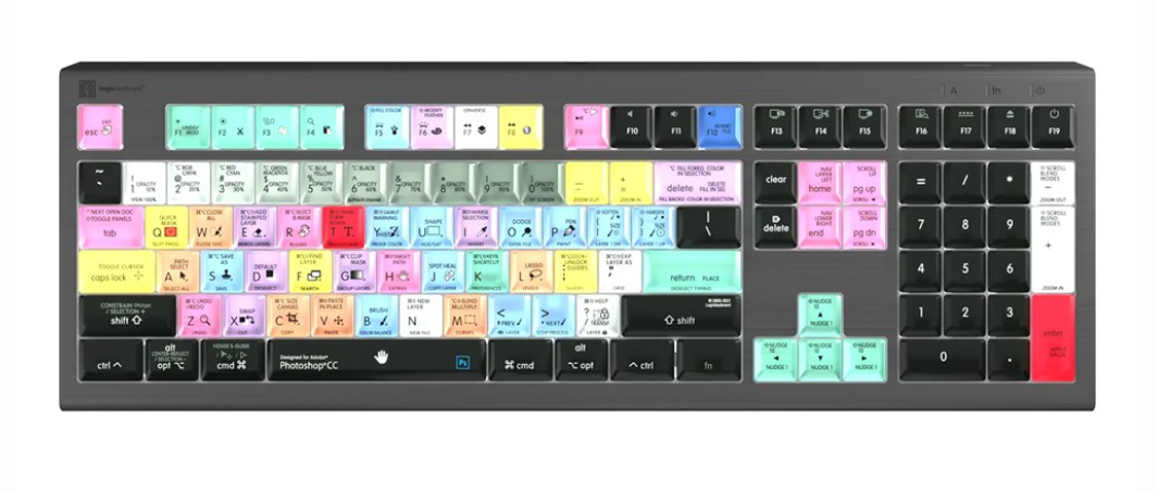 Logickeyboard Photoshop CC Mac Keyboard Skin je tanka, po bojama označena silikonska