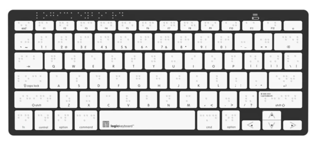 Logickeyboard Braille/LargePrint Black on White PC Assistive Keyboard je pristupačna
