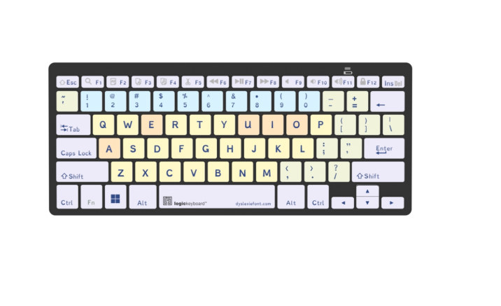 Logickeyboard Dyslexie Bluetooth tipkovnica za PC (UK) je bežična, kompaktna tipkovnica dizajnirana za podršku korisnicima s disleksijom. Sadrži specijalizirani raspored fonta, Bluetooth povezivost i prijenosni dizajn, čime poboljšava čitljivost i udobnost tipkanja.