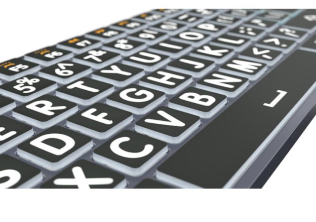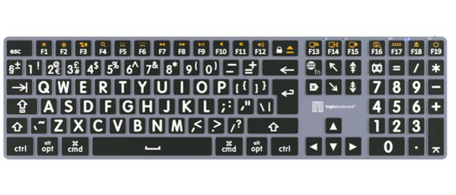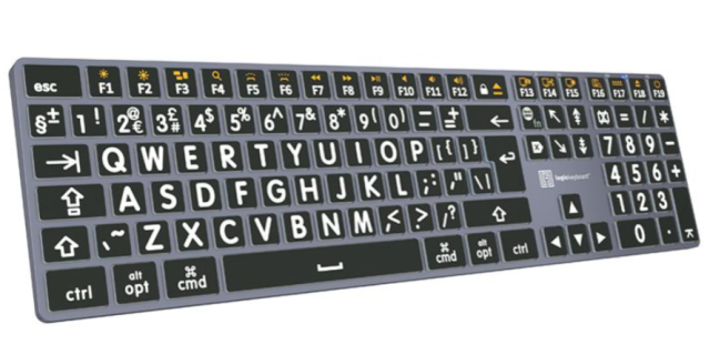 Logickeyboard Braille/LargePrint Black on White PC Assistive Keyboard je pristupačna