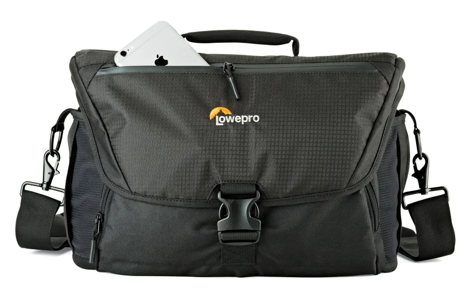 Pro nošení brašny je Lowepro Nova 200 vybavena odnímatelným ramenním popruhem pro pohodlné použití při fotografování a horním madlem pro přenášení v ruce.