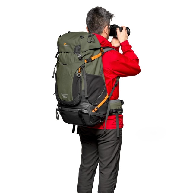 Lowepro PhotoSport PRO 55L AW IV (M-L) je izdržljiv, lagan ruksak za fotoaparat za planinske avanture, dizajniran za višednevne pješačke izlete. U njega stane profesionalni DSLR ili bezzrcalni fotoaparat s montiranim objektivom 70–200 mm f/2.8, 1–2 dodatna objektiva, a nudi i prostor za osobnu opremu, spremnik za vodu i stativ.