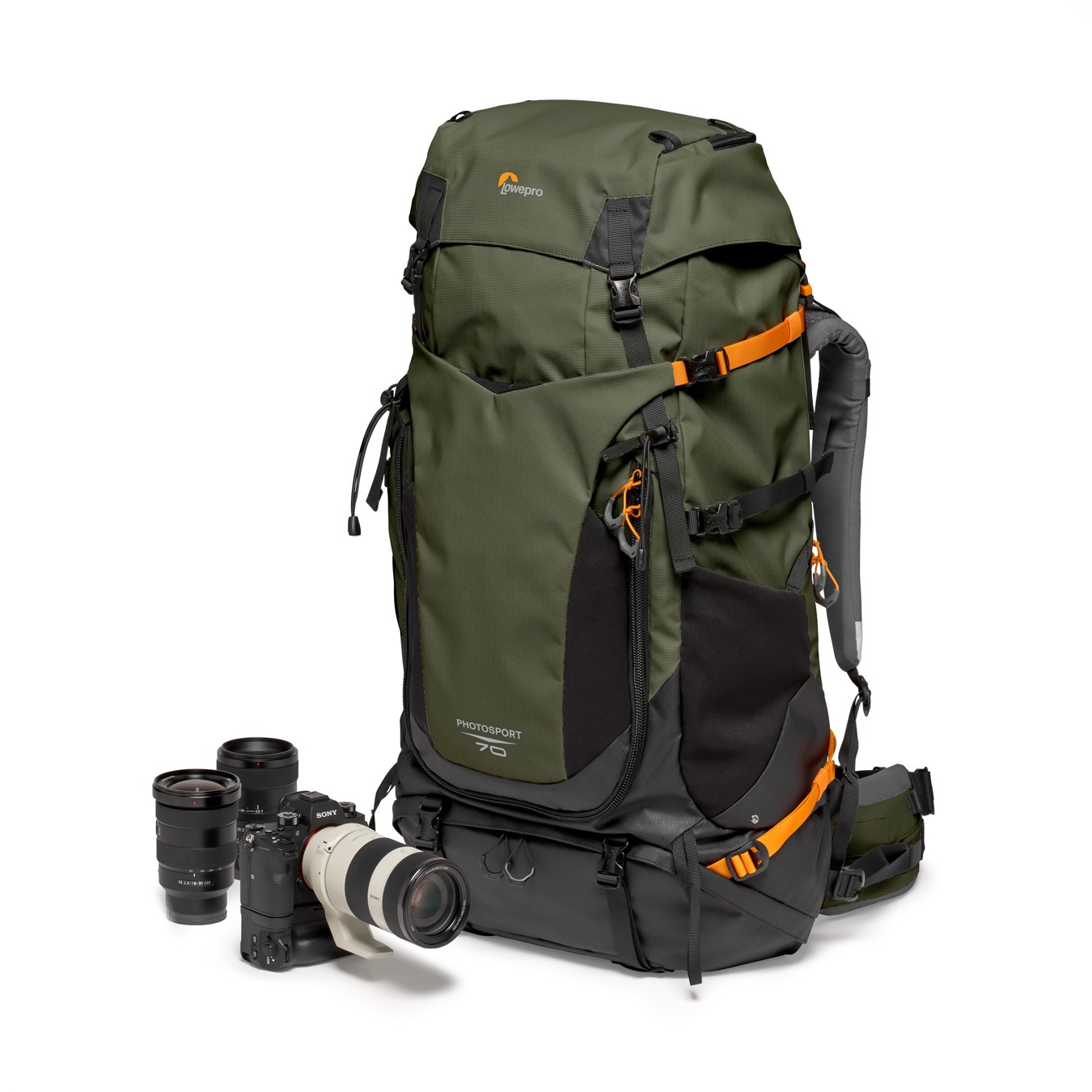 Lowepro PhotoSport PRO 70L AW IV je profesionalni planinski foto-ruksak dizajniran za višednevno fotografiranje na otvorenom. Lagane je konstrukcije i izrađen je od tkanine od 86 % recikliranih materijala, a u njega stane CSC/DSLR fotoaparat s montiranim objektivom od 70–200 mm f/2.8, 1–2 dodatna objektiva, te uključuje prostor za uklonjivu GearUp PRO XL ulošku za fotoaparat, sustav za hidrataciju i opremu za aktivnosti na otvorenom.